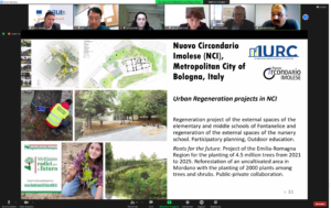Elisa Spada, Gabriele Meluzzi and Marino Cavallo introduced some best practices from Bologna and the Nuovo Circondario Imolese (Italy). Elise Spada from Imola municipality presented ‘Imola Verde’, an innovative map showing over 40 green spaces owned by the municipality. Imola municipality focuses on these green areas as public spaces to mitigate the heat and to support sustainable mobility in the historic center. Marino Cavallo from Bologna Metropolitan referred to the reforestation of industrial areas by creating eco-industrial parks as well as in the Imola racetrack and motor valley. Gabrielle Meluzzi, Mayor from Fontanelice, focused on the urban regeneration of elementary and middle schools, emphasizing the participatory planning process. He also referred to the Roots for the Future project by Emilia-Romagna Region for planting of 4.5 million trees from 2021 to 2025. They focused on building public-private-partnerships.
