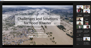 Toru Omiya from Nagano Prefecture (Japan) shared challenges the town of Obuse has experienced since severe flooding in 2019 because of a strong typhoon. Solutions included the development of water storage systems with including NBS like natural levees and agricultural reservoirs. As a further crisis response action, communication among stakeholders along the river has been strengthened and action plans in case of flooding have been developed. Mitigation measures include the protection of essential infrastructure as well as the development of hazard areas maps with public shelters. Also, citizens have been trained through neighbourhood associations. Sharing information and cooperation among all stakeholders is crucial to reducing flood damage.