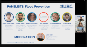 The second panel was moderated by Jens Bley from the IURC team and dealt with urban flooding. Cheol-woo Jung from Busan (Korea) explained the city’s core flooding risks caused by an increase in maximum hourly precipitation and sea-level rise. Busan faces insufficient drainage capacity due to aging pipelines and an increase in rainfall due to climate change. The city has developed several infrastructure countermeasures including water pipes securing and installing rainwater runoff reduction facilities (with drainage pumping stations and rainwater reservoirs). Mr Jung explained some soft, non-structural measures, including an improved disaster response system, an integrated management system for urban flooding, the inclusion of artificial intelligence for disaster prediction and providing real-time information to citizens (including maps and smartphone apps). Mr Jung referred to further infrastructure measures including the facilitation of water circulation by decreasing runoff on the surface and increasing permeation into the ground.