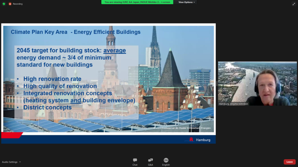 Last but not least, Ms. Brigitte Koehnlein, Deputy Head of the Department for Federal, European and International Affairs, Hamburg Ministry for Environment, presented Hamburg’s Renovation Wave Strategy. Awarded the European Green Capital in 2011, Hamburg puts a strong emphasis on sustainable urban development. The city aims to be climate neutral by 2045, a result of the political commitment made in consequence of the recent IPCC Report to raise its climate ambitions. This is a heavy task with more than 4.5 million tons of CO2 emissions to be reduced.