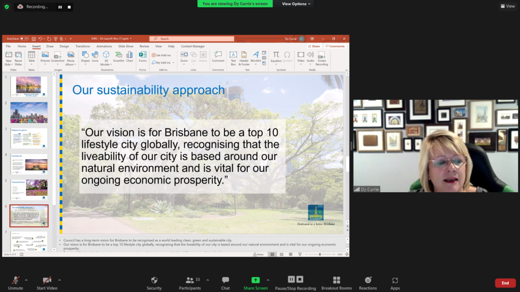 H.E. Dr. Michael Pulch, EU Ambassador to Australia, highlighted the significant role that city and regional communities play in fostering diplomatic and cultural relationships. “The leadership of city actors can provide paradigms for policy planners and demonstrate the political importance of sustainable living” – he said. Ambassador Pulch noted that the IURC activities with Australia are part of the strong and forward-looking bilateral relation strategy where sustainability plays a crucial role. He welcomed the vision, ambition and cooperative spirit of all participants, noting how the pandemic had not dampened enthusiasm for international cooperation.
