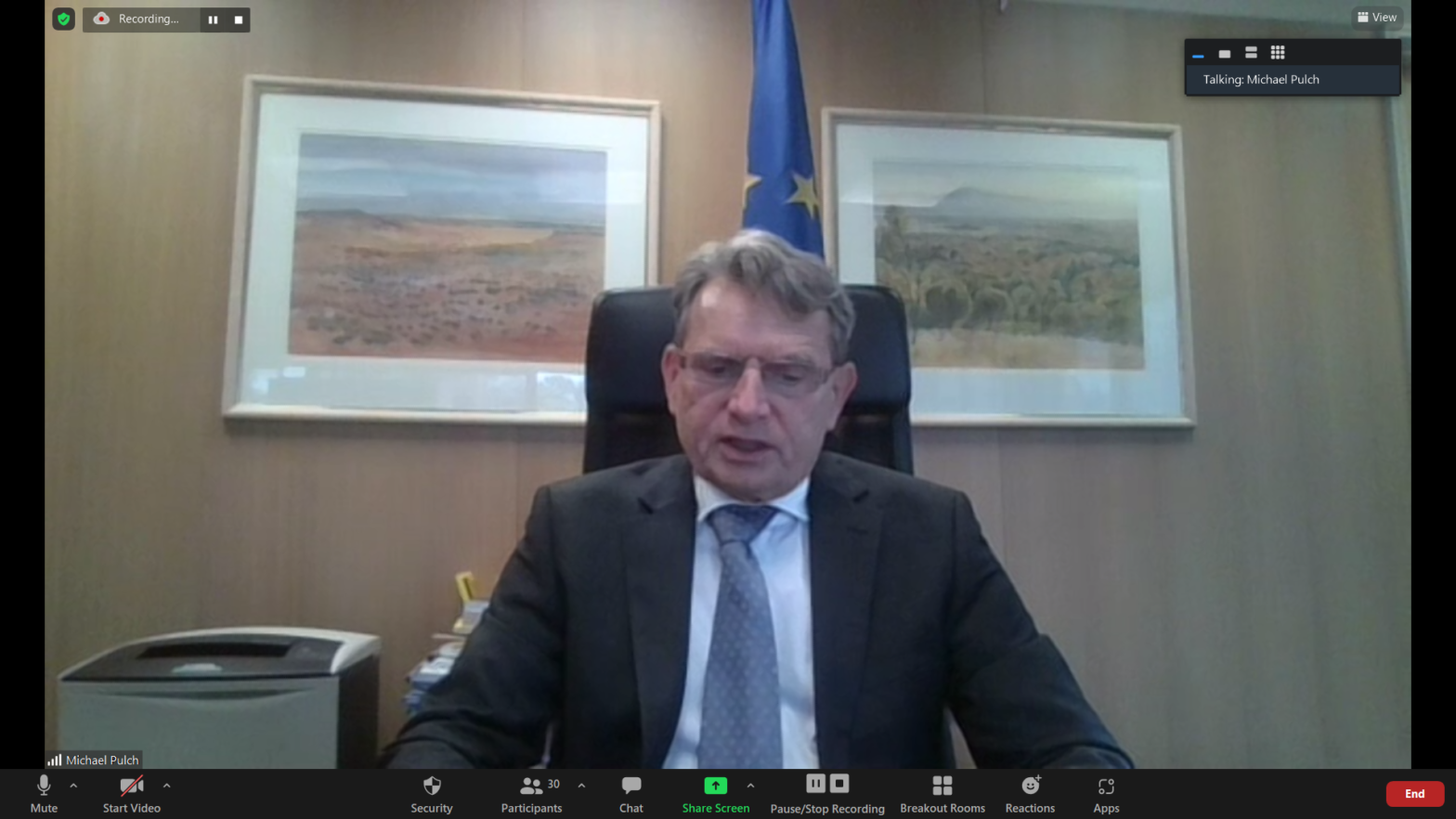 Dr. Ronald Hall, Senior Advisor to the Directorate-General for Urban and Regional Policy (DG REGIO), provided an overview of EU policy on urban development and cooperation and the budgets the European Commission has set aside for the Multiannual Financial Framework 2021-2027 and the NextGenerationEU economic recovery plan to promote sustainable urban development (SUD). He also noted the wealth of experience Australian cities had brought into the EU-funded World Cities programme between 2017 and 2018. Dr. Hall also introduced the cooperation approach within the IURC programme and emphasized the importance of quick identification of thematic priorities in the coming months to prepare the study visits and follow-up pilot actions.