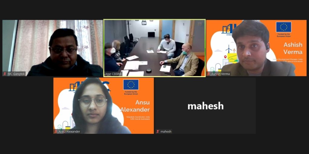 Gangtok in India and Albacete in Spain got together on 22 February 2022 for their second bilateral meeting to identify key activities as part of their cooperation on solid waste management. The City of Gangtok was represented by Mr. Hem Kumar Chettri, Municipal Commissioner, Gangtok, and Mr. Mahesh Sharma, Joint Secretary (Swachh Bharat Mission – Urban), Mission Director, State of Sikkim. The City of Albacete was represented by Mr. Angel Prieto, General Manager, European Center for Business and Innovation (CEEI) of Albacete, Mr. Juan Carlos Sanchez Tebar, Head, Environmental and Waste Management Issues, Municipality of Albacete, Ms. Ana Belén Sánchez Ruiz, Technical Consultant, Environmental and Waste Management Issues, Municipality of Albacete, and Mr. Jose Serna, Technical Consultant, CEEI Albacete