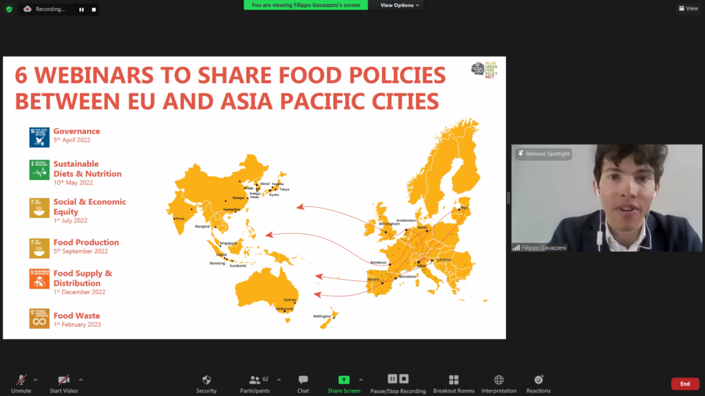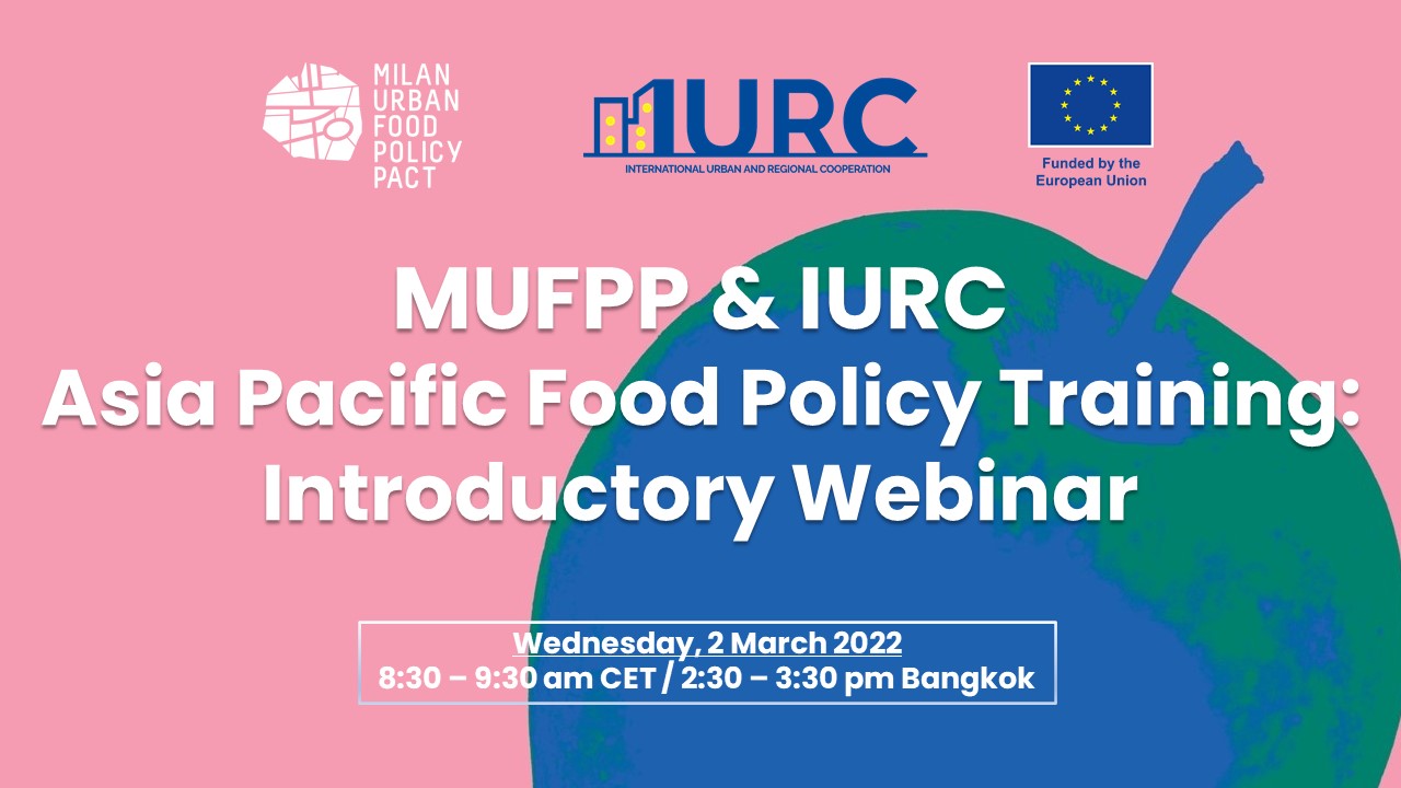 The Milan Urban Food Policy Pact (MUFPP) and IURC teamed up to launch food policy training for Asia Pacific cities. The objective of the MUFPP & IURC Asia Pacific Food Policy Training is to offer participating cities the opportunity to showcase their best practices and learn from their peers in the region on food policy. This series of six webinars will take place throughout 2022 until early 2023, each focusing on a specific aspect of food policy and featuring practices implemented by cities in Europe, Milan, and Asia Pacific.