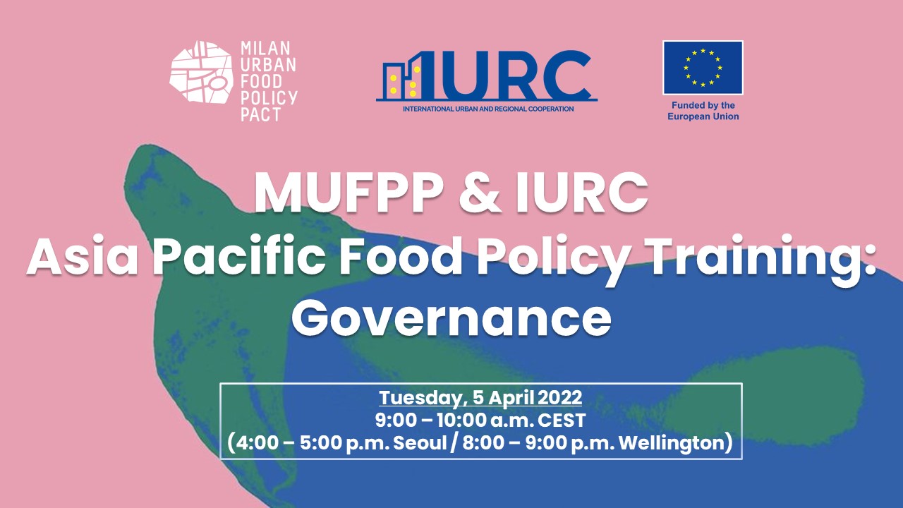 Following the introductory webinar of the Asia Pacific Food Policy Training organised in March, IURC and the Milan Urban Food Policy Pact (MUFPP) hosted the first webinar dedicated to the governance of food systems on 05 April. The event facilitated an exchange of experience and best practices that cities have in consolidating their political and technical commitment to the food system. Moderating the webinar was Pablo Gandara, Team Leader of IURC Asia & Australasia.