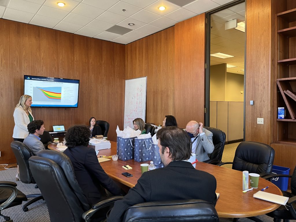 During the afternoon, the delegates traveled to the San Diego Airport, where they participated in several technical presentations addressing the energy transition in public transport and private vehicles. One of the main challenges of transforming the public fleet is adding charging infrastructure to municipal lots, which may be costly and not physically feasible. This challenge has been solved by adding transient charging umbrellas that allow the city to pilot the charging stations before investing in permanent infrastructure. The session ended with a tour of the airport facilities. Hence, visiting delegates learned about their effort to become more sustainable, from increasing EVs to planning bike paths and protecting areas to preserve endangered bird species.