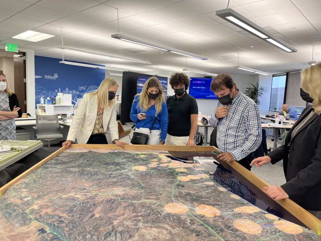 After lunch, the visitors were taken to the San Diego Association of Governments (SANDAG) Vision Lab. There, they learned about the new regional plan, which emphasizes connectivity and puts forward an ambitious infrastructure and transport system that reduces emissions and provides more opportunities for suburban communities to reach jobs and services.