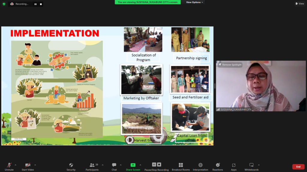 Representing Southeast Asia is the city of Sukabumi, Indonesia. Susiyana, Secretary of Food Security, Agriculture and Fisheries Department, presented the ONE ROOF (One Region One Offtaker) programme, initiated in 2020. In this programme, farmers and offtakers enter into partnership in which the farmers have more access to funding and marketing support from the offtakers. The programme allows the farmers to earn higher income while communities enjoy the produce with lower prices. In addition, farmland is preserved, and the younger generation is motivated to work in the agricultural sector.
