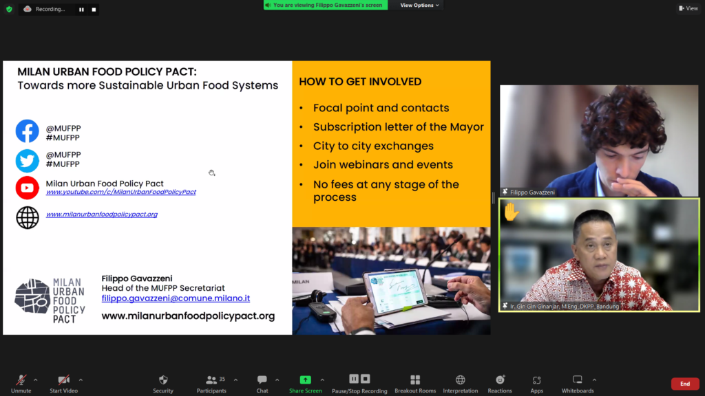 Moderating the training was Filippo Gavazzeni, Head of the MUFPP Secretariat, City of Milan, who provided the latest updates on the activities of the MUFPP, including this year’s regional forum in Bandung and global forum in Rio de Janeiro, and presented the recommended actions and respective indicators of the Food Supply & Distribution category of the MUFPP.