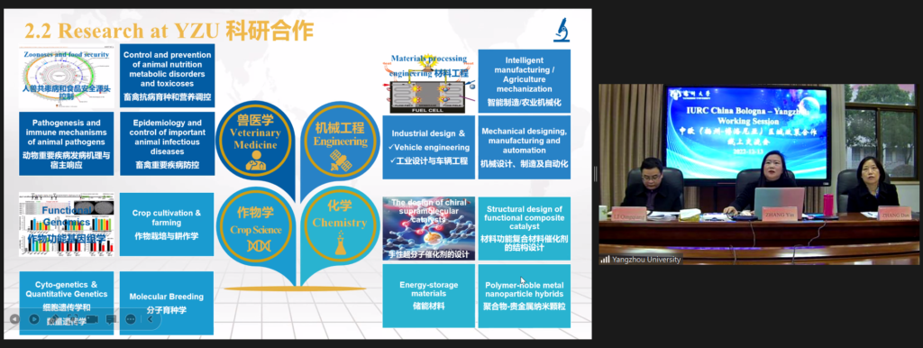 Mr. TAO Xiaojun, Director of the Division of Planning in Yangzhou DRC expressed the hope for deeper cooperation in joint research, knowledge exchange and joint project in the future. Delegates from Yangzhou University shared the information and current international cooperation programs at the university, highlighting the core research in agriculture and horticulture, food and environment, grand canal and cultural heritage, and low-carbon technologies. Universities in NCI, Bologna are invited to join the academic partner network, collaborate in research, and exchange faculty and student with Yangzhou university.