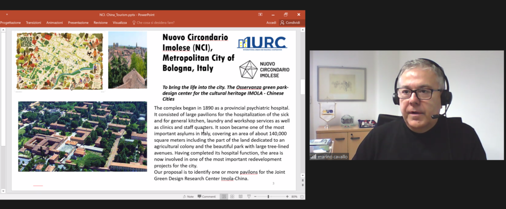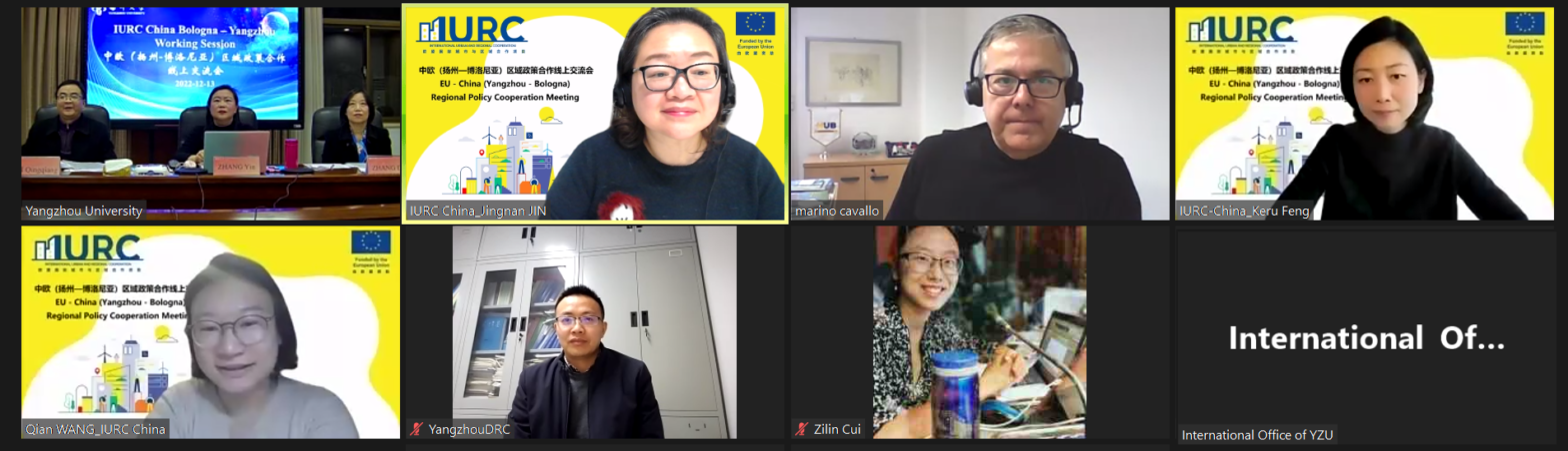 On 13th December 2022, officials from Nuovo Circondario Imolese of Bologna (Italy) and Yangzhou (China) participated in an online working session to develop substantive cooperation areas between the cities. NCI, Bologna and Yangzhou are partner cities in the IURC China programme. In December 2021, the two cities signed the Memorandum of Understanding to solidify the cooperation through a joint Green Design Centre in the field of green city and sustainable urban development. Yangzhou city brought the stakeholder of the Yangzhou university, which was partner in the NCI, Bologna – Yangzhou Green Design Centre. Delegate of NCI, Bologna participated in the meeting on behalf of the municipality of NCI, the University of Bologna, the Academy of Fine Arts of Bologna, and Imola International Music Academy (Fondazione Accademia Internazionale di Imola).