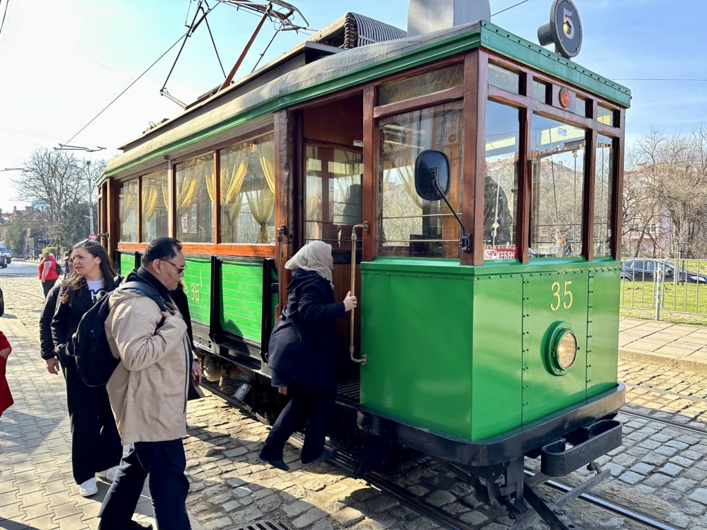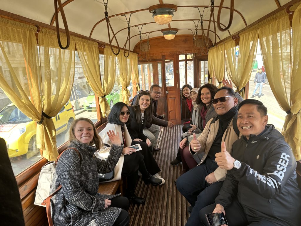 Later, they paid a visit to the Traffic Control Center, which manages the traffic light system in Sofia. Mr. Dimitar Petrov, Director of the Traffic Management and Analysis Department, showed the algorithm system that employs the live monitoring of data sources from live traffic cameras, traffic controllers, video surveillance, etc. Afterward, the delegates were offered the great experience to take a city tour in an authentic retro tram. The trams brought them to the park & ride facility which equipped with electric charging stations. The delegates saw the practical solutions to address the congestion challenges in the city center.