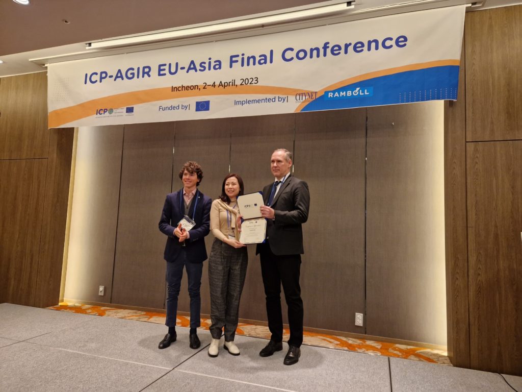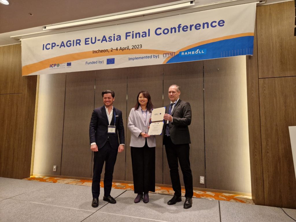 Delegates from the IURC Korea pilot cities of Seoul and Sejong met Ms. Maria Castillo Fernandez, Ambassador of the European Union to the Republic of Korea, during the ICP-AGIR Final Conference held in Incheon, Korea, on 3 April 2023. The EU-funded ICP project has promoted city-to-city (C2C) cooperation between EU and non-EU cities on the topics of energy transition, air quality, circular economy, and migrant and refugee integration. Six city-pairings from the EU and Asia reported on their results: Incheon-Berlin, Incheon-Almeria, Gwangju-Athens, Taoyuan-Braga, Taichung-Prato, and Singapore-Milan. The conference was organised by CITYNET, which is also coordinating the IURC activities between the European cities of Dublin, Rotterdam and Sofia, as well as the Korean cities of Busan, Sejong and Seoul.