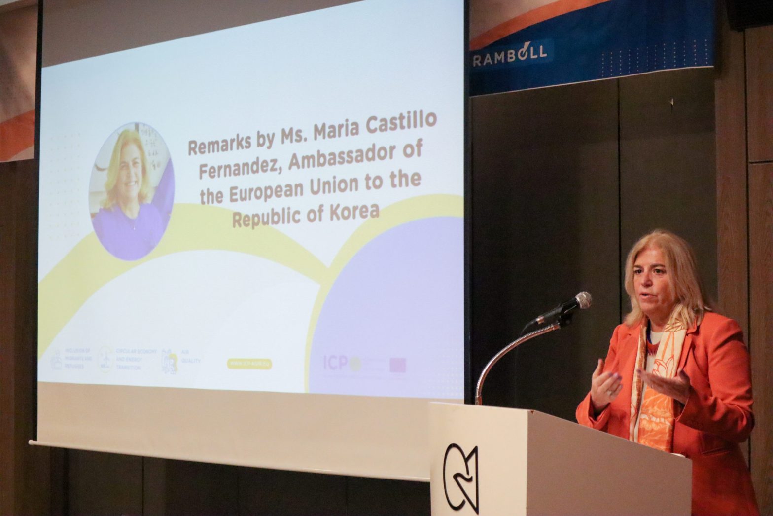 Delegates from the IURC Korea pilot cities of Seoul and Sejong met Ms. Maria Castillo Fernandez, Ambassador of the European Union to the Republic of Korea, during the ICP-AGIR Final Conference held in Incheon, Korea, on 3 April 2023. The EU-funded ICP project has promoted city-to-city (C2C) cooperation between EU and non-EU cities on the topics of energy transition, air quality, circular economy, and migrant and refugee integration. Six city-pairings from the EU and Asia reported on their results: Incheon-Berlin, Incheon-Almeria, Gwangju-Athens, Taoyuan-Braga, Taichung-Prato, and Singapore-Milan. The conference was organised by CITYNET, which is also coordinating the IURC activities between the European cities of Dublin, Rotterdam and Sofia, as well as the Korean cities of Busan, Sejong and Seoul.