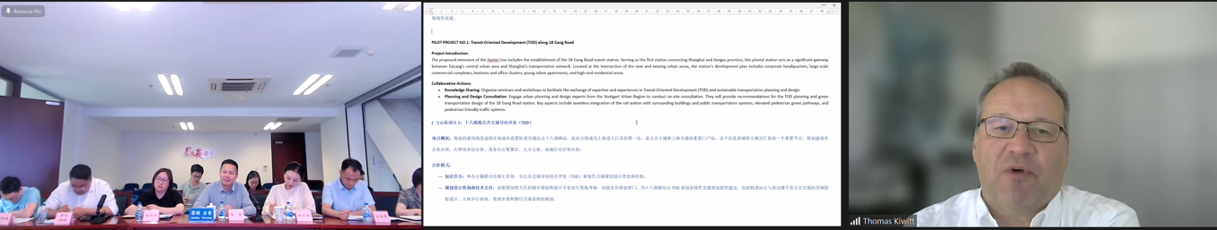 On June 15th, representatives from the Stuttgart Urban Region and Taicang (Suzhou) met in the follow-up working session to discuss collaborative actions within the framework of the IURC China on Transit-Oriented Development (TOD) and low-carbon urban areas.
