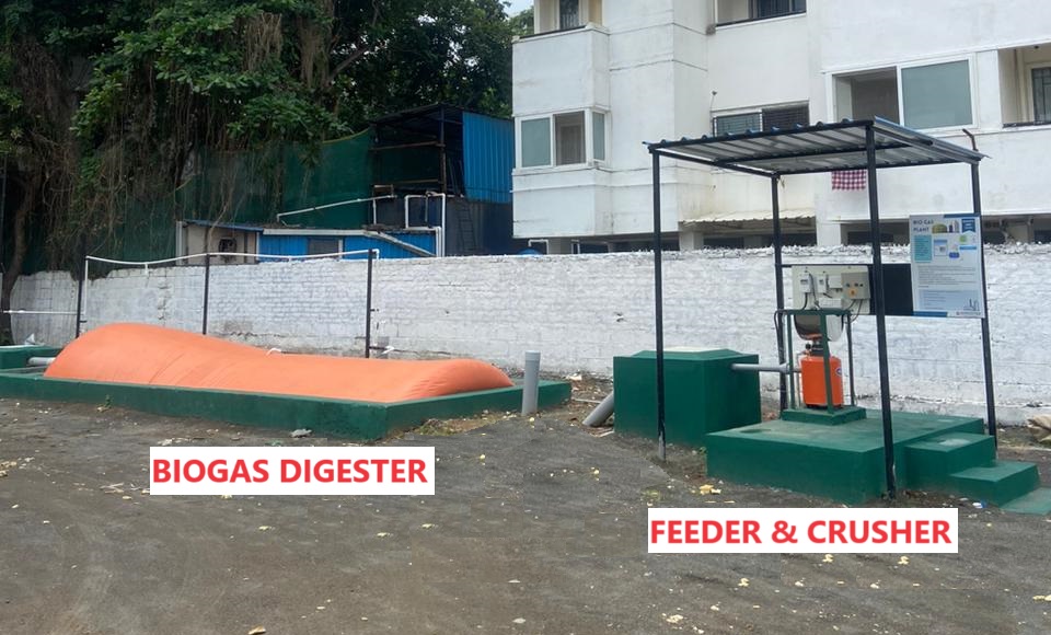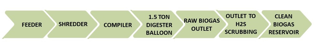 A biogas plant is a facility that converts organic waste materials into biogas through a natural process called anaerobic digestion. This renewable energy technology utilizes microorganisms to break down organic matter, such as agricultural residues, food scraps, and animal manure, in the absence of oxygen. As the organic material decomposes, it produces methane-rich biogas, which can be used as a clean and sustainable source of energy for cooking, heating, and electricity generation. Additionally, the residual slurry left after the digestion process can be used as a nutrient-rich fertilizer. Biogas plants contribute to waste management, reduce greenhouse gas emissions, and promote the production of renewable energy in an environmentally friendly manner. The pilot plant handles 300 kg/day food waste produced within the campus premises, while the output is used for cooking. The plant comprises of the following components: