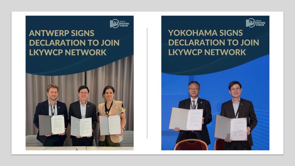 The city of Yokohama and city of Antwerp joined the City Network for the Lee Kuan Yew World City Prize. The declaration was signed by Mr. Ryoichiro Orii, Director-General of the City of Yokohama’s International Affairs Bureau, the Vice-Mayor for Sports, Worship Services and Animal Welfare Stijn De Rooster, Executive Director of Design Sciences Hub, University of Antwerp Jana Deforche, with Eng Hwee Lim, CEO of Urban Redevelopment Authority of Singapore (URA), in Vienna on 2 and 3 July 2025 respectively. The Design Sciences Hub on board as Antwerp’s Knowledge Organisation, reinforces the city’s commitment to collaborative urban solutions applying design thinking to solve complex urban and societal challenges through cross-disciplinary collaboration. Antwerp received the Special Mention accolade in 2020 for its careful and deliberate development of strategic projects over the long term to rejuvenate the city. The city was rejuvenated by tackling issues of climate change focusing on thematic cluster networks on affordable housing and living environments, urban mobility, and the strengthening of green and blue infrastructure. Key projects such as the revitalisation of the Scheldt Quays and the Urban Renewal Housing Programme were enabled by strong citizen engagement and cross-sector collaboration.