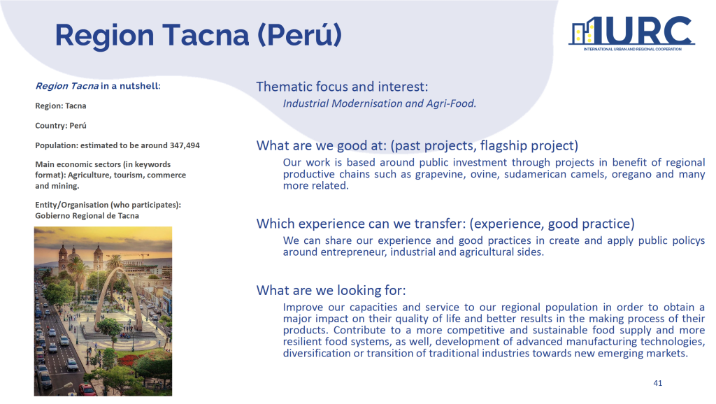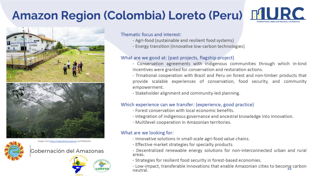 Contributions on sustainable food systems and low-carbon technology came from Claudia Juliana Dulcey Cala, Secretary of Agriculture and Environment for the Department of Amazonas, Colombia highlighted their focus on sustainable and resilient food systems, energy transitions, and innovative low-carbon technologies. Irene Covi of the Interreg Italy Austria programme discussed their cross-border cooperation program with Austria, emphasizing community-led local development and their participation in the IURC initiative. Luis Ulloa from the EGTC Mino River grouping of municipalities and provinces presented their cross-border cooperation between Portugal and Spain, focusing on agro-industrial development and sustainable commercial markets.