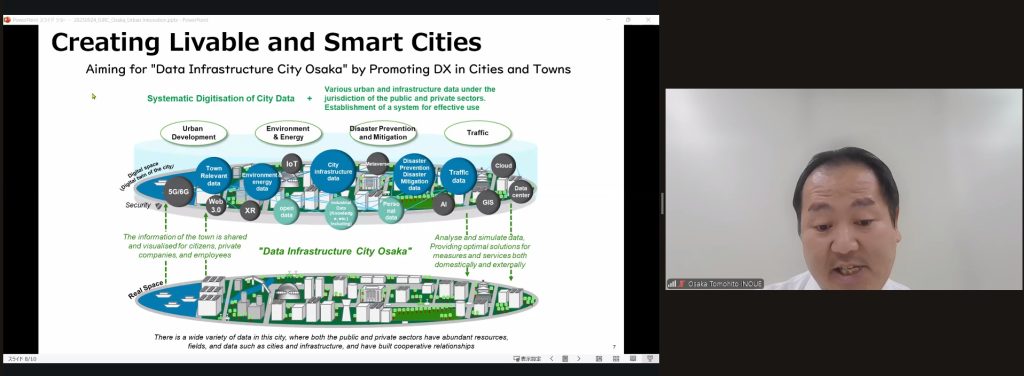 Tomohito Inoue, Director for Smart City Promotion, outlined Osaka’s ambition to become a “Data Infrastructure City.” Anchored by the Osaka Innovation Hub, this initiative connects startups, researchers, investors, and corporates to accelerate entrepreneurship and foster digital transformation.