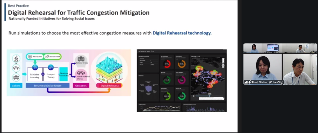 Shinji Nishino from the Kobe City Government detailed how supercomputers and mobile data are being used to simulate disaster evacuations and reduce traffic congestion. Kobe is also collaborating with Kashiwa City on City-OS systems, enhancing urban management while safeguarding data privacy.