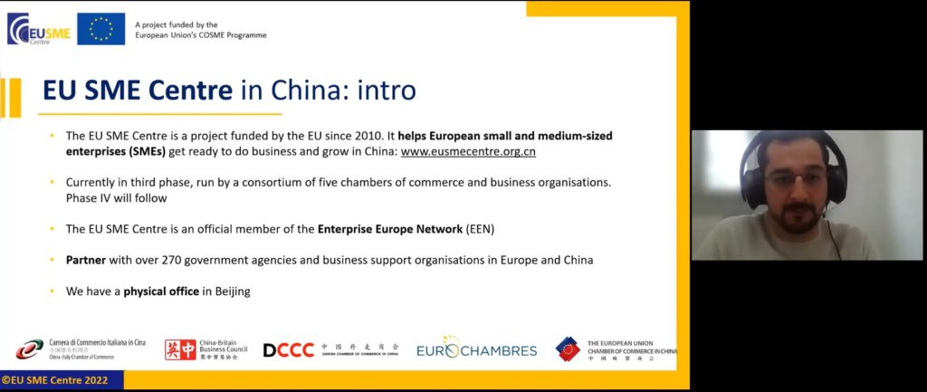 IURC – China teamed up with EU SME Centre and co-organized a training session on 13 April 2022, which provided the participants with an overview of the key elements and main directions of China’s green transition efforts, particularly focusing on the areas of interest for EU businesses. It also provided an overview of the main market entry strategies that the European business –in particular SMEs – can pursue in China.