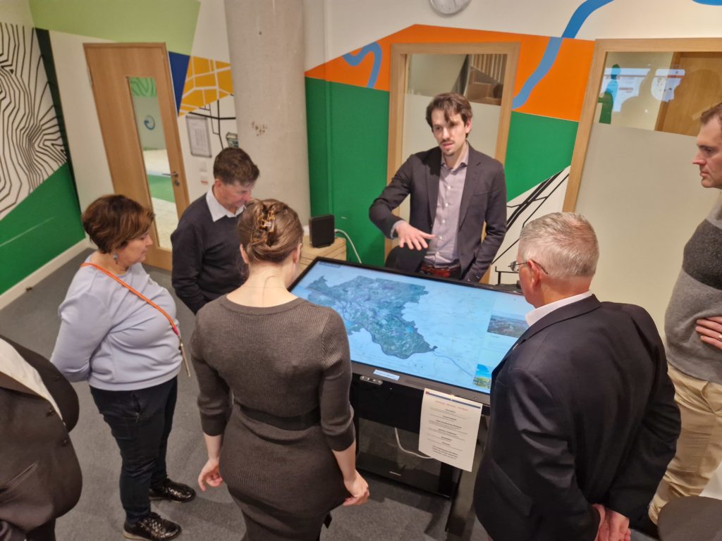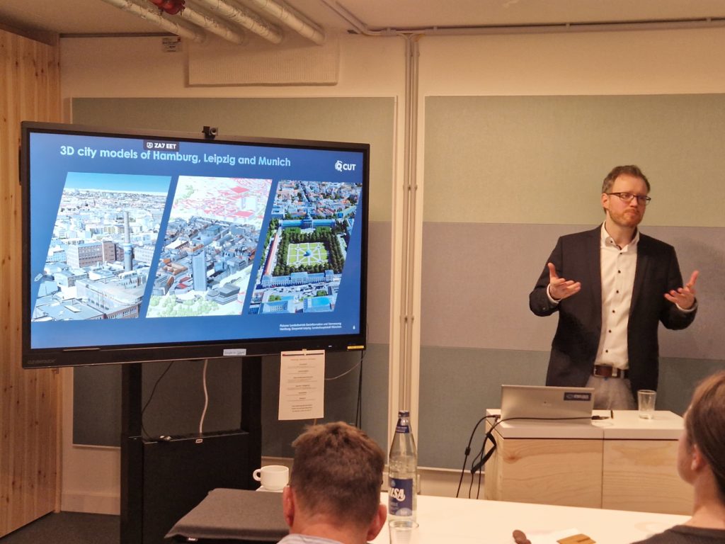 Tom Eichhorn, CEO of LGV, welcomed Canberra delegates and introduced the agency’s services including IT-based urban (spatial) applications, 3D-models and data analyses to all survey-related tasks and real estate valuation. The GIS agency colleagues provided an outline of the Urban Data Platform and demonstrated the capacity to present a visualization of the data. This has been under development for nearly 20 years. The agency has the capacity to bring data together with data so as to construct a digital twin of the city. This can generate a 3D representation of the city for assessing various development proposals, but also for anticipating specific issues (such as pollution). They are part of the Cooperation Project with Leipzig and Munich, both of which have similar data capabilities. This allows them to play out ?what if? scenarios to assist in achieving sustainable cities (for example).