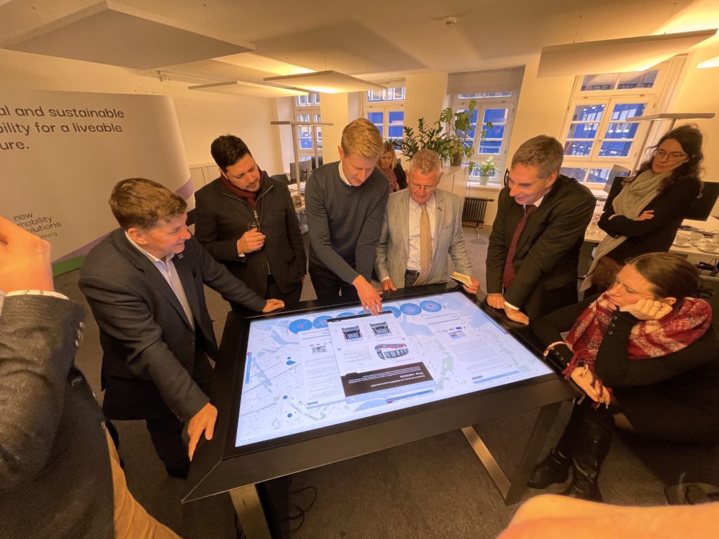 The delegation visited New Mobility Solutions and viewed demonstrations of mobility services and urban data management of the greater Hamburg region.