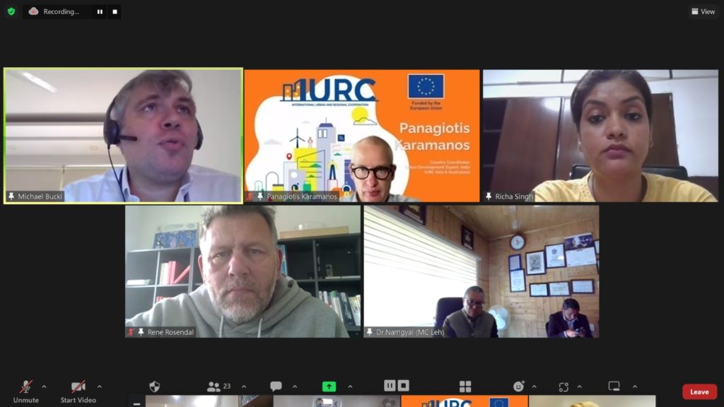 Mr Panagiotis Karamanos, Country Coordinator – India delivered the welcome address and introduced the IURC programme, while Ms Ansu Alexander, Helpdesk Coordinator, briefly set the scene on solid waste management context and landfill remediation targets and achievements in the EU and India. Two experts from EU & India and one city official from Leh, India presented about their experiences and learnings from legacy waste biomining in their respective regions. These presentations were followed by a Q&A session. The experts were: