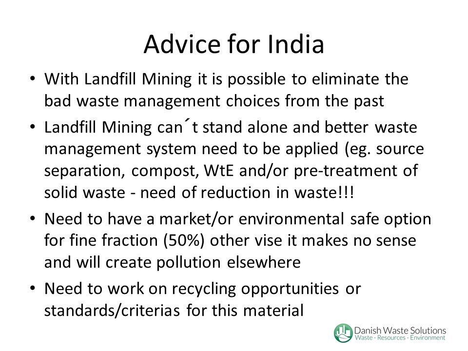 Mr. Rosendal introduced the concept of Enhanced Landfill Nining (ELFM) that connects the vision of circular economy with the need to use land more efficiently. Through an integrated approach, remediation is combined with the excavation, processing and recovery of the deposited waste thereby reducing the cost for remediation, reclaiming valuable urban land and recovering materials. He went on to share the experiences of EU countries in landfill mining projects, such as improving the policy environment, formulation of national regulations, focus on new technologies. He also discussed the various challenges, such as complex regulations, lack of full scale projects, and economic viability. He concluded, by suggesting that landfill mining has to go hand in hand with improved waste management, an effective policy environment, and a market for recyclables.
