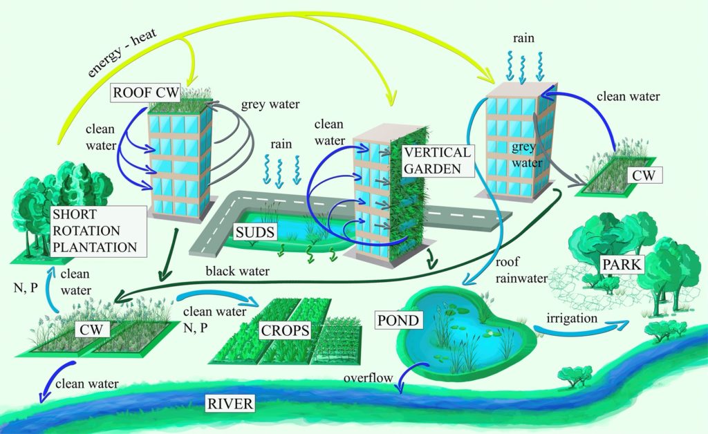 Strategies and actions are needed worldwide to optimize the infrastructure and resource management to confront the challenges of resource depletion, climate change and degradation of ecosystems. Nature-based solutions (NBS) and circular economy (CE) can provide tools for this transition. Implementation of NBS, combined with the concept of the circular economy benefits the ecosystem services and returns resources to the territory. Blue-green infrastructure in smart cities, integrated water management, ICT etc. are considered as enabling tools for NBS in the circular economy (CE) linking to Sustainable Development Goals.