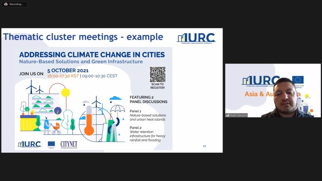 The implementation of the IURC in Korea is supported by CityNet, the flagship Seoul-based association of urban stakeholders committed to sustainable development in the Asia Pacific region. CityNet is performing the helpdesk function for the six cities and will organise some of the thematic activities for IURC, the first of which is Addressing Climate Change Effects in Cities: Nature-Based Solutions and Green Infrastructure on 5 October 2021.