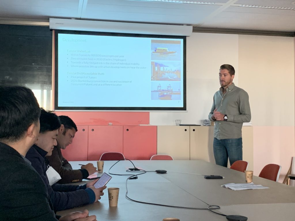 On day 2, the delegates from Busan and Rotterdam continued their technical exchange at De Rotterdam and Science Tower. Mr. Gerard van Starrenburg, Mobility Advisor at the City of Rotterdam, delivered a presentation on Rotterdam?s policies on passenger transport by water & water taxi. Busan delegates then met with Mr. Mars Geuze, Co-Founder of Hardt Hyperloop, to learn more about the innovative company which has been co-funded and awarded by the European Commission. After the brief presentations, Busan delegates enjoyed the smooth ride of water taxi and could see how Rotterdam has been efficiently operating water taxi inside of the city. The second day of the study visit ended with a visit to Future Mobility Park, an educational testing site for newly developed mobility technologies in Rotterdam. The introduction of Future Mobility Park and its responsibilities were given by Mr. Lucien Linders, Director of Future Mobility Park.