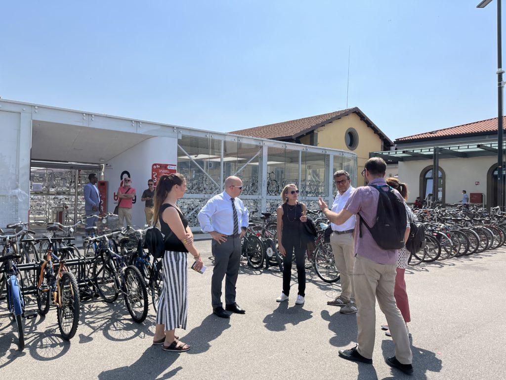 The last day of the study visit in Rimini began at the intermodal hub at Rimini Station, which connects the Metromare and Bike Park Rimini station. Both projects are part of an effort to pivot the mobility and transport system of Rimini and the surrounding area to make it sustainable, integrated, and able to connect the touristic seaside with the historic center. Metromare is the new trolley bus that connects Rimini to Riccione along the coast. The new electric public transport system uses the latest technology to be fast, reliable, and safe. The control center interested all delegates who appreciated the system’s technology and efficiency. The Bike Park Rimini project encourages the use of bicycles by locals and tourists. Placed strategically next to the train station, the hub offers guarded parking, bike rental, repairs, a store, a small bar so cyclists can wait for their train and even baggage storage.
