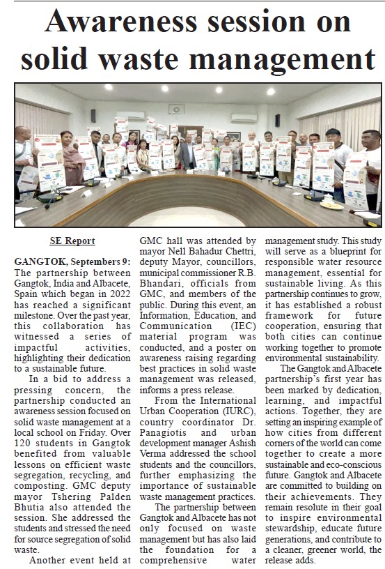 The partnership between Gangtok, India, and Albacete, Spain, has reached a significant milestone. The cities began their partnership in 2022 and have conducted two productive exchange visits, enabling them to share insights, best practices and ideas for creating more sustainable communities, with a focus on solid waste management awareness.