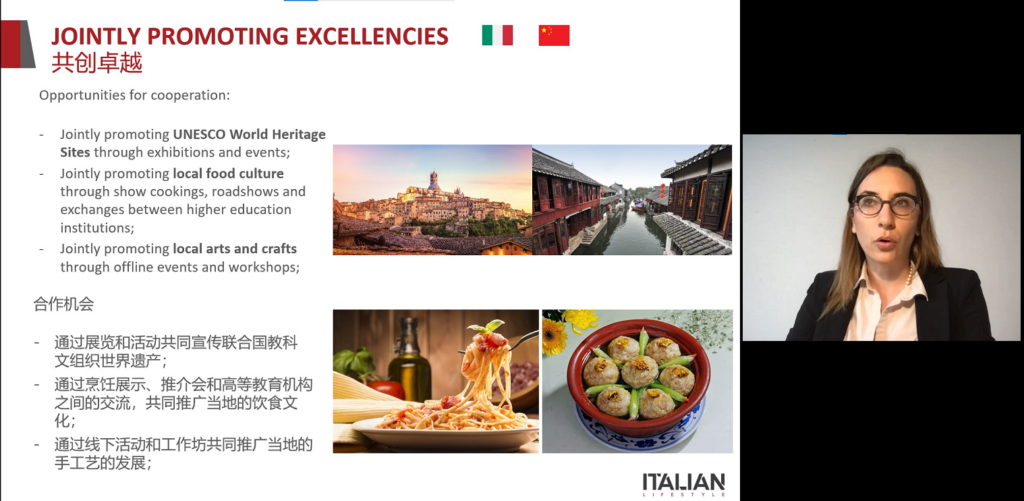 此外,她还建议以下的双边合作方式:第一,通过展览和活动共同宣传两国列入世界遗产的地点;第二,通过烹饪展示、推介会和高等教育机构间的交流,共同推广当地饮食文化;第三,通过线下活动和工作坊,共同推广二地艺术及手工艺的发展;第四,通过展示园林和运河的自然风光,共同促进绿色旅游。最后,爱丽丝·莫西卡尼女士坚定地表示,透过意大利和中国代表团间的互访,必能促进二地观光交流与宣传推广。
