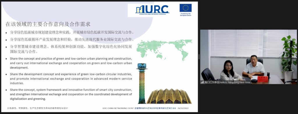IURC China专题小组专家顾希先生及戴国雯女士介绍了城市规划和设计方面的政策和实践,重点介绍了中欧城市间合作的最佳实践,并就潜在的合作领域提出建议。
