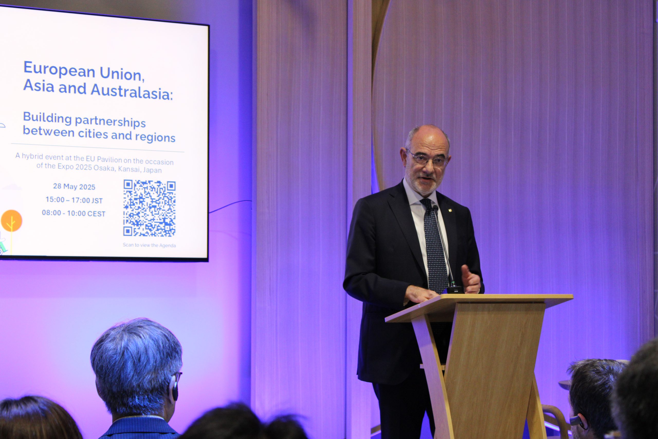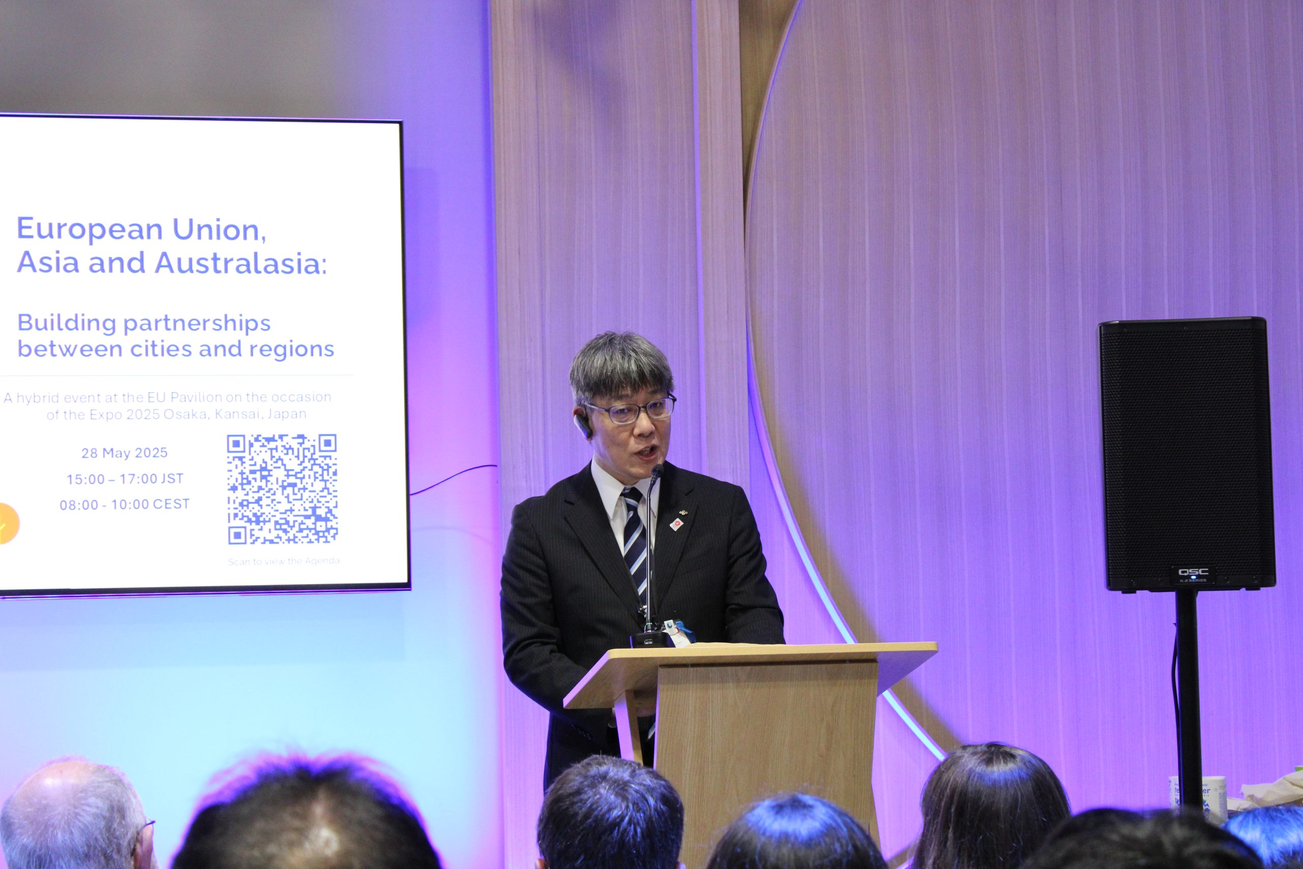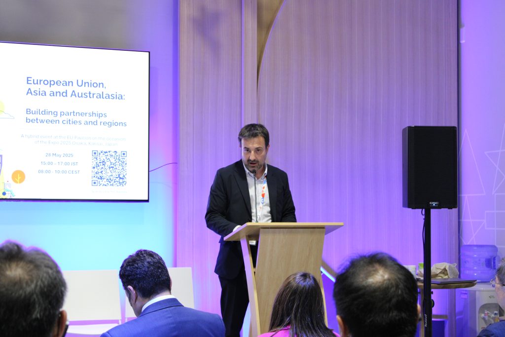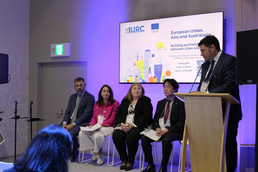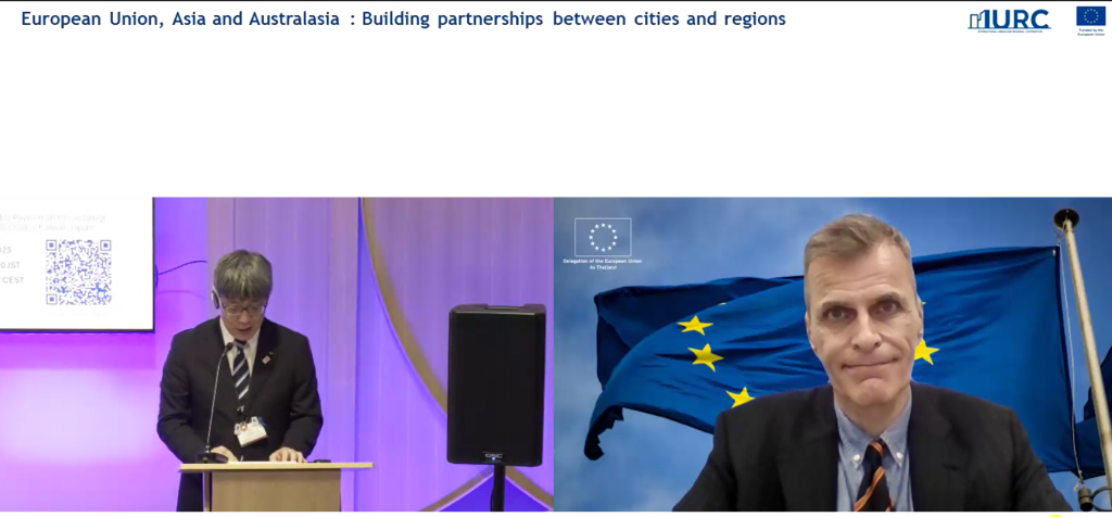 In his live-streamed welcoming address, Mr. Andreas Röttger, Head of the Asia Pacific Team at the EU Foreign Policy Instruments, expressed his gratitude to the Japanese Government and Osaka Prefecture for hosting the Expo and highlighted the importance of international cooperation in addressing urban challenges. Mr. Röttger emphasised the role of the IURC programme, launched in 2017, in promoting global knowledge exchange, noting that its new phase will broaden and deepen joint work, experimentation, knowledge sharing, and policy learning in an increasingly complex world. Mr Röttger stated: ?I am honoured and proud to officially launch the second phase of the Asia and Australasia IURC programme to run until 2027, advancing the critical role of cities and regions as innovators. (?) Cities and regions are playing an increasingly central role in innovation, crafting locally responsive strategies, informed by the real needs on the ground, while also keeping an eye on broader global goals. (?) We look forward to seeing many new collaborations and solutions in the future?.